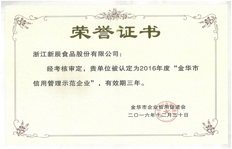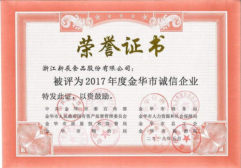 被評為2017年度“金華市誠信企業(yè)”,“區(qū)重點骨干工業(yè)企業(yè)”,“浙江省級骨干農(nóng)業(yè)龍頭企業(yè)”